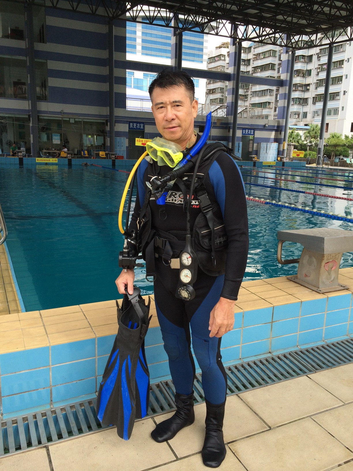 15:00-17:30水面、水下装备脱着、有控制的紧急游泳上升、空气耗尽练习、口吹式建立水面正浮力、备用气源的使用、中性悬浮;