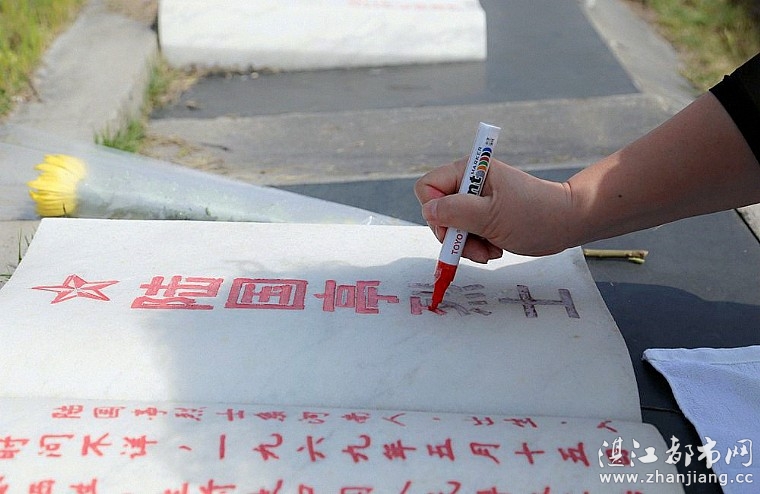 志愿者们为解放湛江烈士纪念碑、海军一六〇舰烈士碑和460多名英烈墓碑描摹碑文。