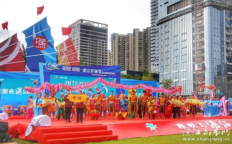 开渔节首先发布“我要去湛江”文旅复苏助力百业复兴活动、“我要去湛江的理由”征集活动视频和“我要去湛江”旅游线路,并启动“我要去湛江”系列活动。接着,舞蹈《海之恋》、《人龙腾四海》、《鱼灯呈祥》、《傩舞纳福》和祭海仪式《祈福开渔节》等极富湛江海洋特色的非遗节目轮番展演。近午,随着击鼓声响起,2020年湛江开渔节正式启动。湛江湾海域,马达轰鸣,鞭炮齐响,万船竞发,开启大海最为欢腾的时刻。