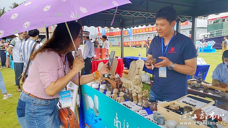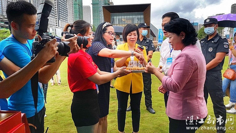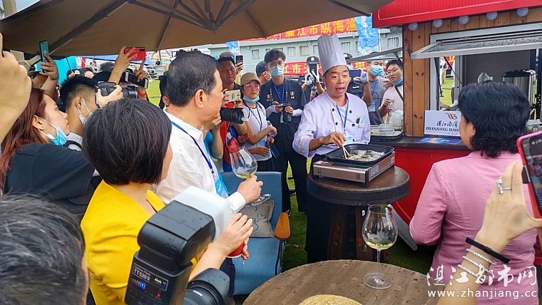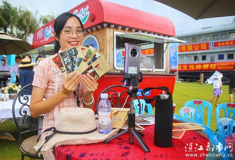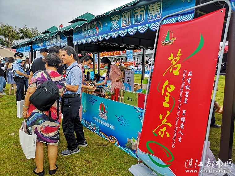 活动现场,文创市集吸引市民朋友前来品茗、喝咖啡、尝月饼、试吃海鲜、聆听古筝和吉他弹唱。湛江知名水产企业进行名优水产品电商直销,邀请网红参与直播带货,给市民朋友带来有的看、有的吃、有的玩之开渔盛会。
