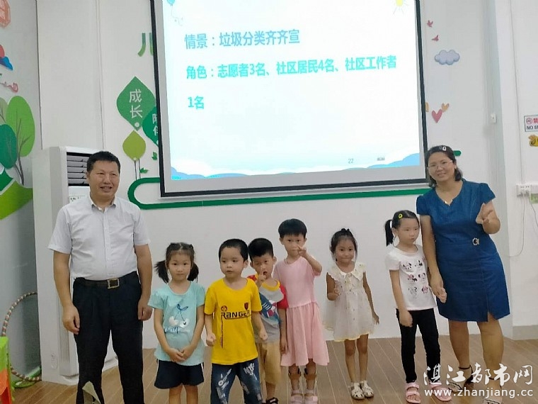 志愿者老师邀请了4位小朋友做小志愿者,其他家长和小朋友做了社区的领导和市民,大家一起进行垃圾分类知识的普及。