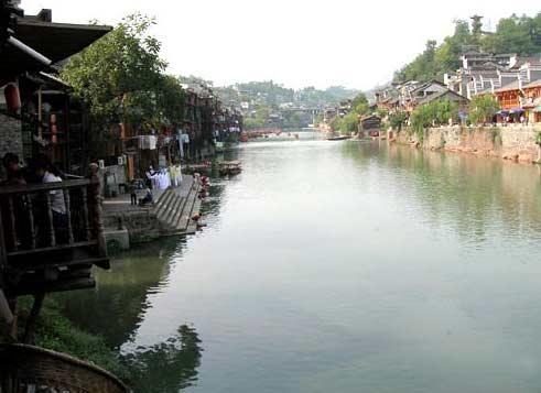 凤凰城倚南华山而建,山上林木葱茏,绿意盎然,小城中空 气清新。沱江沿凤凰城缓缓流过,江水清澈,可见河底碧绿的水草和欢快的游鱼。凤凰的自然资源并不得天独厚,但这里的自然环境得到了良好的保护。 凤凰很小,规模远不如国内另一座古城丽江。凤凰的自然景观也很平常,比不上同是少数民族地区的九寨沟。凤凰的美在另一面,这就是它的自然和人文的和谐融合,在于它骨子里发散着的古朴和温情。