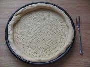 面团发酵至两倍大的时候,拿回来揉啊揉,揉掉里面的空气,然后擀成圆形的皮儿,四周要厚一些~在烤盘中涂一层色拉油或者橄榄油,然后将面皮放入烤盘里。用小叉子在面坯上扎一些小孔~