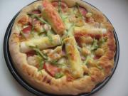 玉米粒、青豆、虾仁、熏火腿、青椒、蟹肉棒、马苏里拉奶酪、番茄沙司、橄榄油(食用油)。