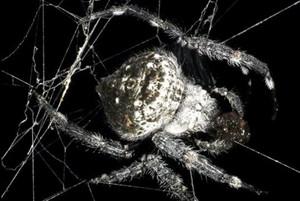 图3达尔文树皮蜘蛛以查尔斯达尔文命名的达尔文树皮蜘蛛(Caerostris darwini)能沿着整个河流边结网。目前发现最大的蜘蛛网长达82英尺(25米)。这类蜘蛛建筑师编织的丝网的强度是任何已知蜘蛛丝的两倍。一块同样大小的凯夫拉纤维强度只有该蜘蛛丝的十分之一。考虑到蜘蛛网的巨大以及蜘蛛丝的强韧,人们肯定以为该蜘蛛必然体型巨大,实则不然,雌性蜘蛛身长不到2厘米,而雄性蜘蛛更小,体积只有雌性的五分之一。