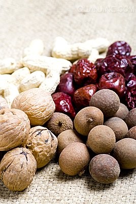 桂圆又名龙眼,它富含葡萄糖、蔗糖和维生素A、B等多种营养素,其中含有较多的是蛋白、脂肪和多种矿物质。这些营养素对人体都是十分必需的。特别对于耗伤心脾气血的人,更为有效。而红枣有健脾益胃、补气养血、安神的作用。