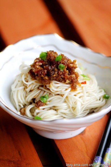 想做这款干炸酱面很久了,因为非常有特色,家里的长辈们常说吃了好几十年都没吃厌。在我的记忆里,炸酱面是家的味道,平凡的食物包容着温暖的情意,软软的香香的,让人难忘。和老北京炸酱面不同,但又存在相同之处,都是干拌,但酱料、调味更为生猛香辣。如果老北京炸酱面温文尔雅的名门闺秀,那川味干炸酱面则是个性鲜明的时尚美女。