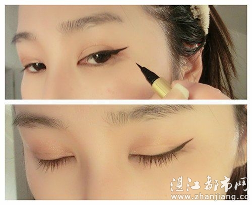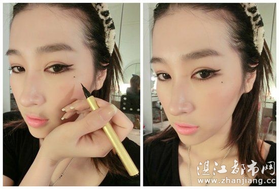 向外斜的画出“假睫毛”,来加强眼妆效果。