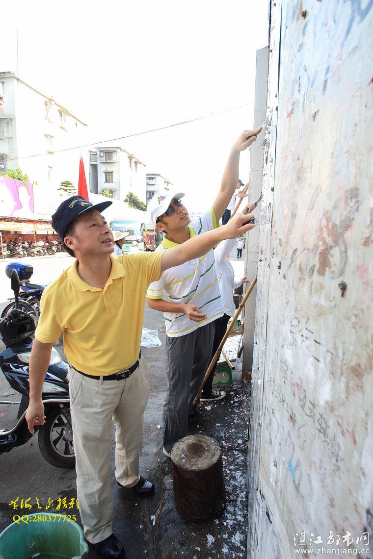 湛航集团霞海港的书记带领他们部分员工也来到现场,加入了这场消灭牛皮癣的战斗。