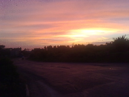 用手机拍的湖光傍晚的晚霞
