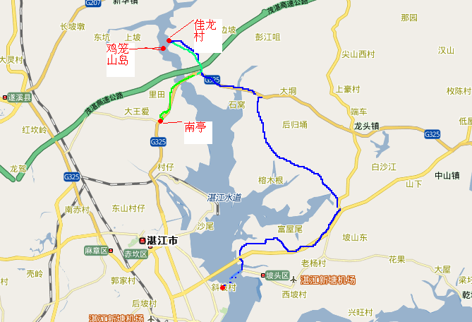 骑行路线: 平乐渡口----旦黎村----塘尾村----炭之家----东灶村----芦村----绿水村----潭村----官渡----G325----严村----佳龙村----鸡笼山岛----南亭(FB)----返湛(全程约80公里)