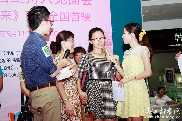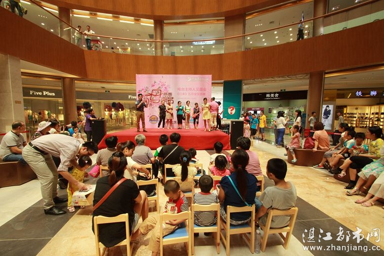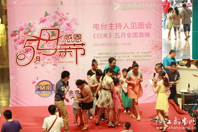 2014511母亲节当天下午,鹰展广场一楼迎来许多的儿子儿女,他们分别带着他们的妈妈,有些小朋友是妈妈带着他们来参加在鹰展广场进行5月母亲节感恩之电影《归来》同欢乐活动。电视台的傅记者和她妈妈和其他的孩子已经他们的母亲一起走上舞台进行了母亲节感恩互动游戏。本次活动承办是鹰展广场,由湛江交通音乐电台和金逸影城湛江赤坎店共同举办。