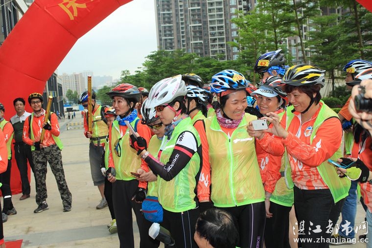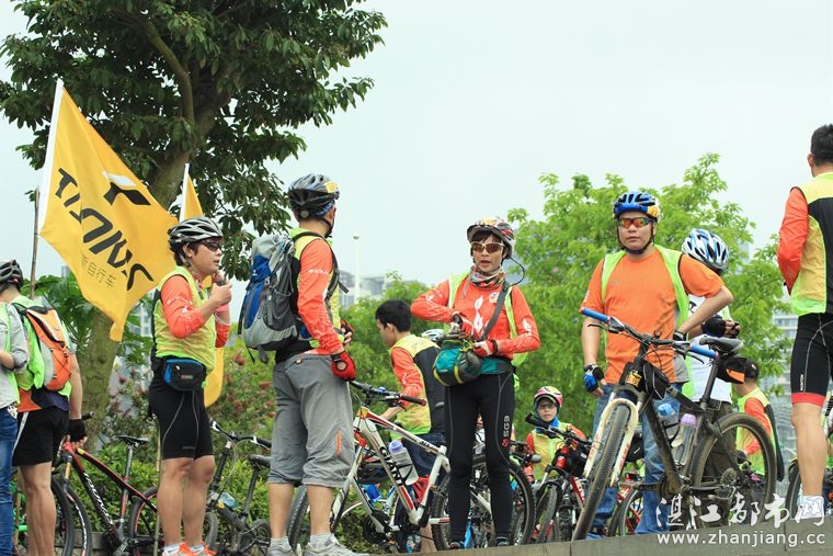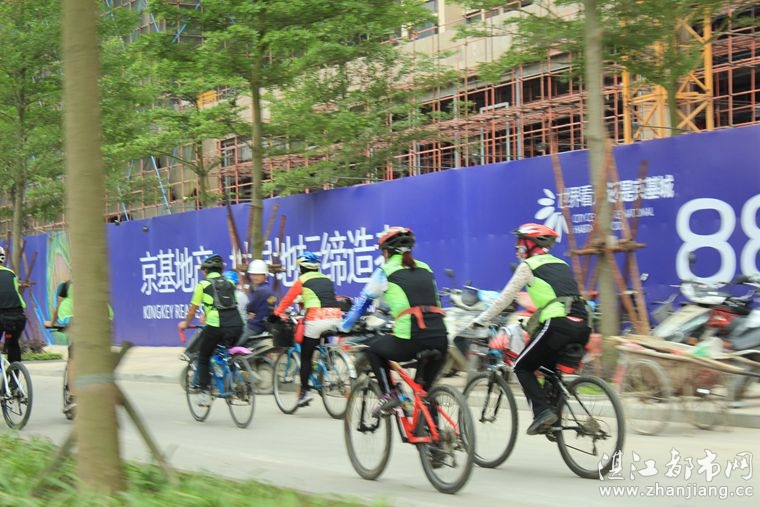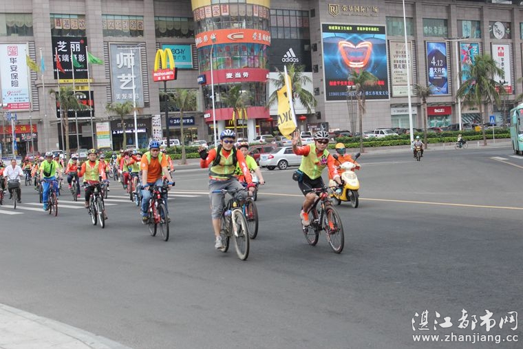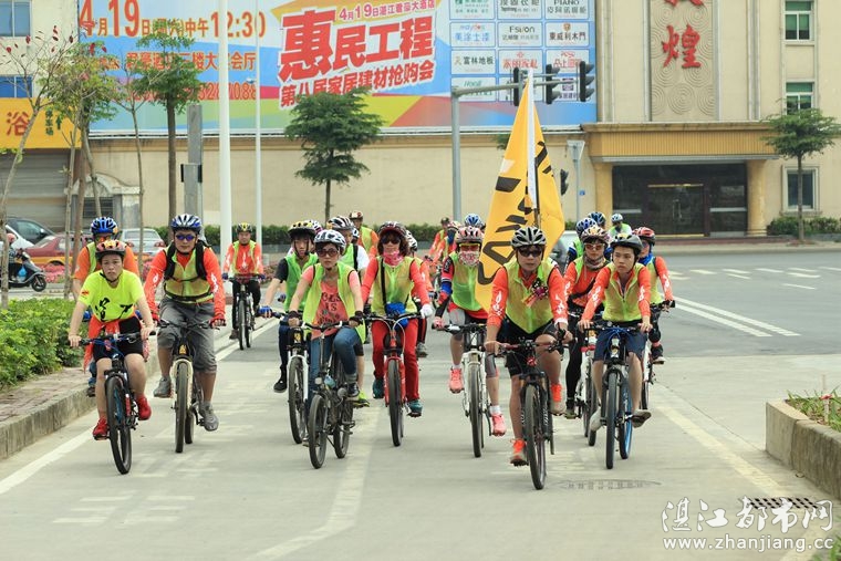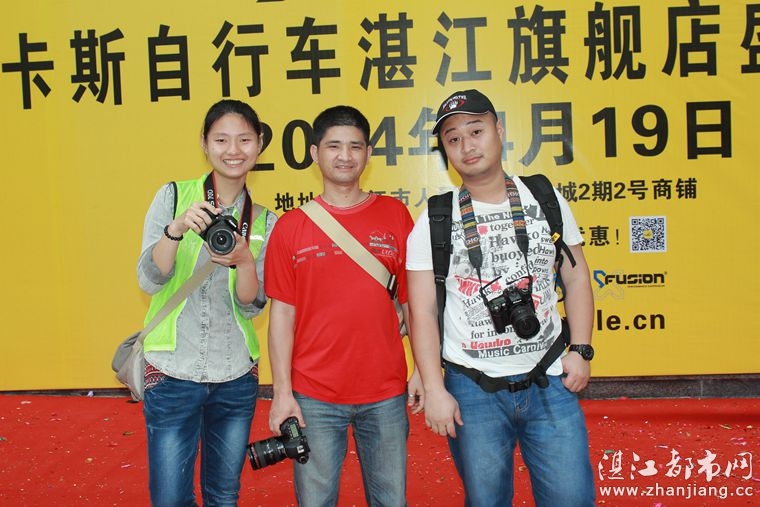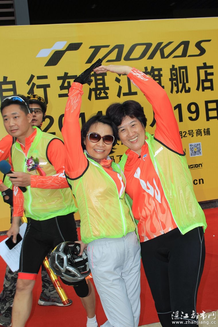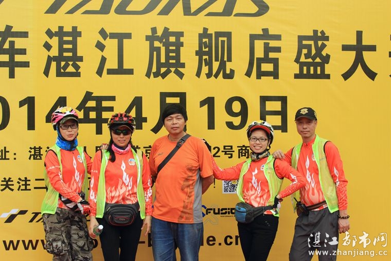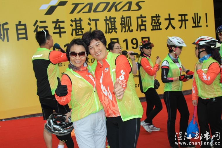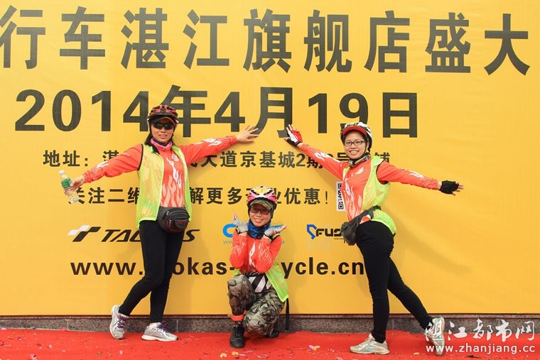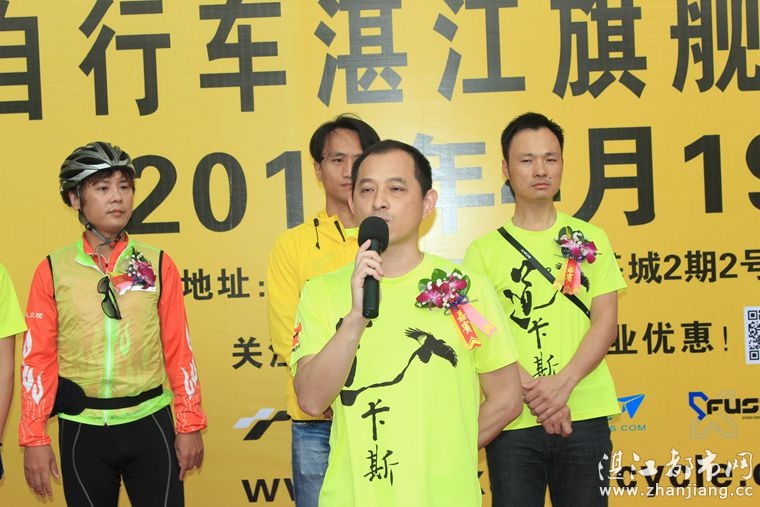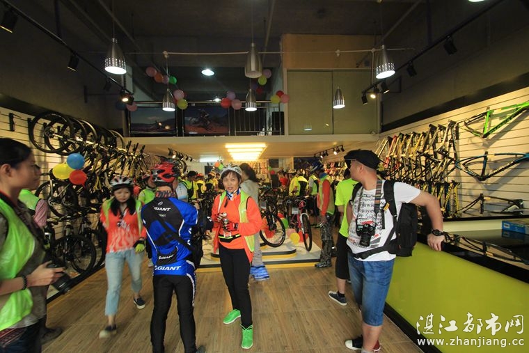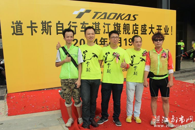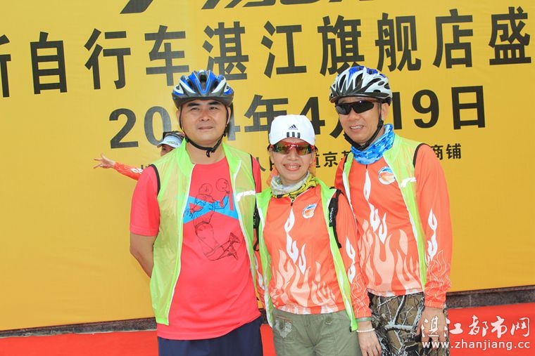 4月19日位于湛江市人民大道京基城2期2号商铺(公园一号对面)道卡斯自行车湛江旗舰店门前聚集着100多名来自湛江铁人三项俱乐部骑友、热血骑兵俱乐部骑友、湛江都市网网友.为道卡斯自行车湛江旗舰店开业庆典祝贺.