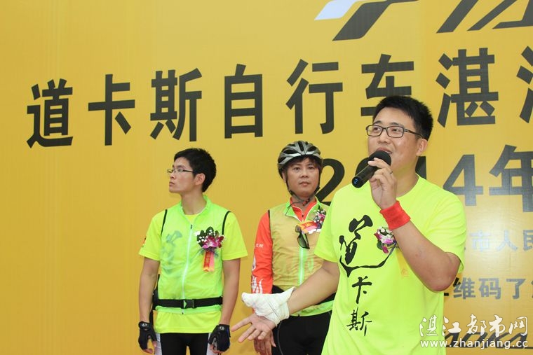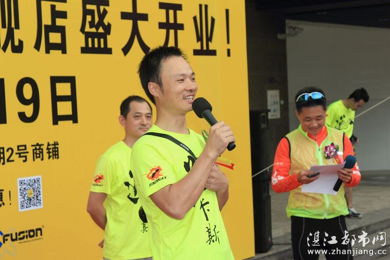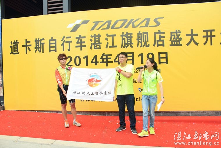 巡游结束之后,是授旗仪式.虽然道卡斯自行车湛江旗舰店才正式开业,但已经跟湛江都市网和湛江铁人三项俱乐部达成合作意向,为湛江都市网网友和湛江铁人三项俱乐部会员免费提供交流平台.车店负责人李庆庆分别从湛江都市网庄经理和湛江铁人三项俱乐部负责人雨云龙手中接过湛江都市网的旗帜和湛江铁人三项俱乐部的旗帜.