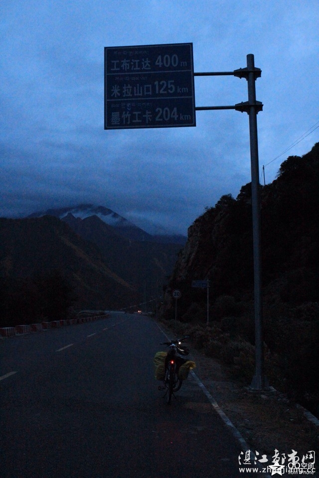 早上起来,吃过早餐备上水和干粮,检查刹车和给链条上点油。出发了,路况很好,路的襾旁都原始森林,景色非常秀丽。我超越上官和吉他两人,按照自己身体频率慢慢把速度提高,一路沿着帕隆藏布江缓缓直下。今天心情特好,一边骑车一边回忆我与自行车运动一起走过的日子。2002年,市团委举办一次“珍爱我们的家园”环保考察活动。刘爽姐、王毅哥、越海、旭亮和我五人组成一支环保考察队,骑自行车去为期一周的考察,使得我第一次接触自行车运动。2003年初我购买我自己第一台公路自行车,800元的品路入门公路车,每天早上我准时六点骑到七点十五分,我的体重从196减至167只用了半年时间。我喜欢上了自行车运动后认识老沙、关公、风不息、华师度、大健这些自行车前辈,使我爱好又进了一步。03、04这两年我的身影骑遍广东广西两省。2005年我和辉哥与朱伯为了三个残疾家庭筹捐款,组织一次“救助残疾儿童 献爱心万里行”从湛江骑自行车到北京筹款活动。除长途骑行我还参加各地的自行车比赛,广东、广西、安徽等等,实现自行车爱好者的心有多远就能骑多远的理念。一阵电话响声把我从记忆当中拉了回来,原来是上官的电话,“死胖子,骑那么快干什么?我们追了三个小时都不见你的身影……”“哦……我在4068公里处,你们离我有多远?我打算吃的饼干坐会再走。”“我们离你约有五公里吧,我们都在吃大饼”当我骑到K4077处开始有个9公里长下坡,2009年和2010年各有一名车友分别在K4081和K4083处遇难,所以说安全骑行才是一切快乐之本,希望这两位兄弟在天堂能开心和快乐……骑到102开始出现烂路,这只是今天下午辛苦的开始。下午两点半我进入通麦县,因为天气好时间早我打算把这著名泥石流区、滑坡区、塌方区的通麦天险骑完,今晚在排龙乡休整。我与上官和吉他沟通好后通过通麦大桥向十四公里地质灾害危险区骑去,这段路是318国道最险的一段。这里的路是硬从悬崖上凿出来的道路,尘埃满天飞我推车走路连前方五米之外都无法看清,我的信念当中已经没有了放弃崩溃,勇敢的小强胖子骑着,推着,在滚滚尘土中我一步一步把这十四公里天险骑完。下午四点半我來到排龙乡并住下来,还能看到安哥上年留下来的鱼丝呢。半小时后吉他和上官陆续到达,上官见到我就大声说:“兄弟,我给一条手臂粗的树枝从山上落下砸到我肩膀,上帝保佑!我没事,高兴死了!马上来几瓶啤酒庆祝庆祝!妈啊!今天PP真的疼了!多谢多谢多谢神的保佑……