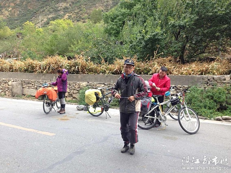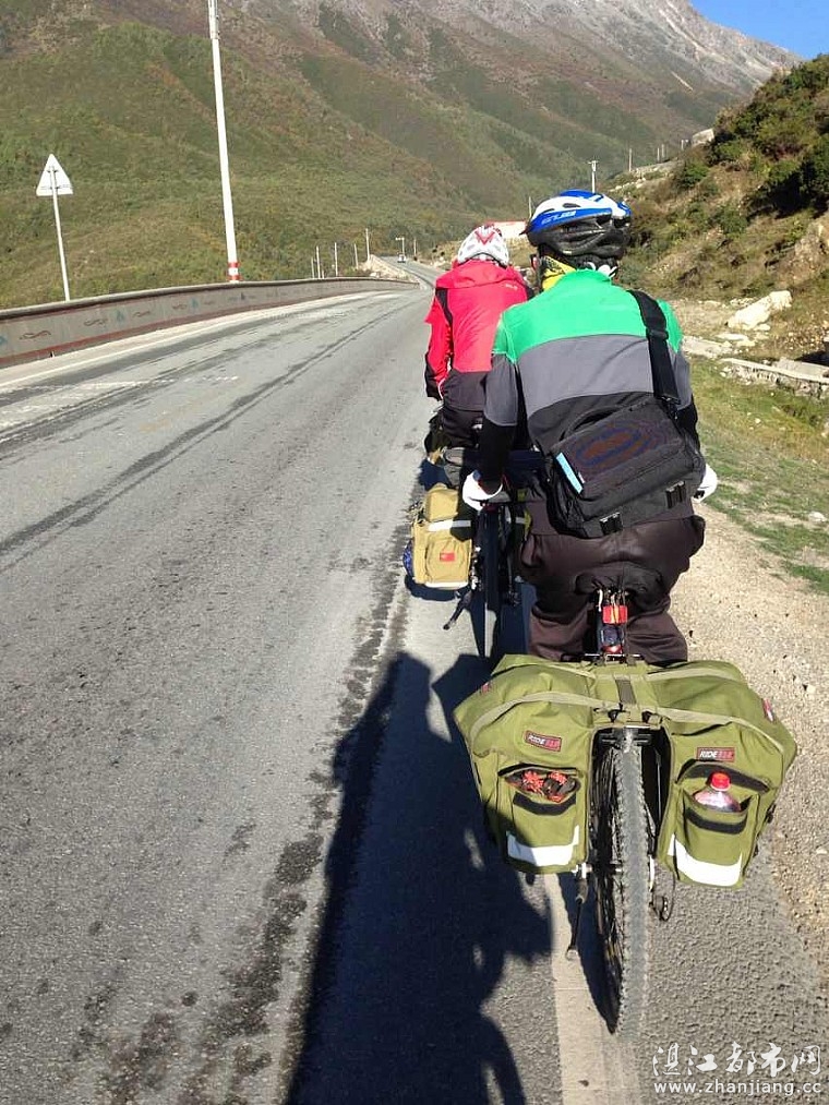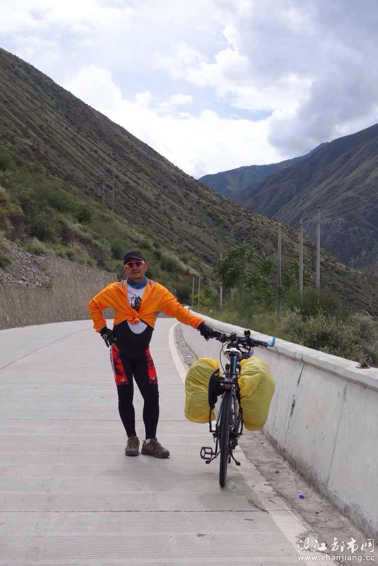 理塘到巴塘的路修得非常好,当车行驶到4685米的海子山遇到入藏来的第一场雨加雪气温下降至5度左右,过完海子山太阳把我们屁股都晒穿了。中午十一点车子到达离巴塘县城2公里处停了下来,因为该车不是巴塘车如果入城会给交通查扣……,“四人帮”与北京的小猪和水哥再次骑行318向拉萨进发,到达巴塘县城里小猪和水哥找个快递把购买的两个牛头寄回北京,吉他找了家小饭馆点菜大家一齐吃早午饭,我们出来时早餐都沒吃。吃完饭大家谈论今天的行程,巴塘到芒康108公里中间要爬4170宗巴拉山。要从金沙江2500上升4170中间落差1670米难度并不比折多山差,如在巴塘休整明天出发难度会很大,如先骑行38公里到达金沙江旁边住下明天再骑去芒康70公里,难度会降低很多。大家都同意这个建议决定就按照这方案骑行,吉他说“:你们先骑到金沙江休整,我先在巴塘休整上上网明天再追赶你们。吉他的能力我们都知道所以就由他在县城里休整,我们五人先后出发向金沙江骑去。