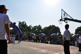 赛事说明:一分钟内完成3个不同定点的9次投篮。按进球数量计算成绩,若相互间的进球数相同时,用时较短的胜出,每个赛区决出前5名晋级”2013湛江“红牛杯”能量周末篮球赛”5人制篮球决赛中的“终极三分王“的冠军争夺战。