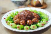 两手左右交替摔打,将內部空气排出,使做成的狮子头结实一点。